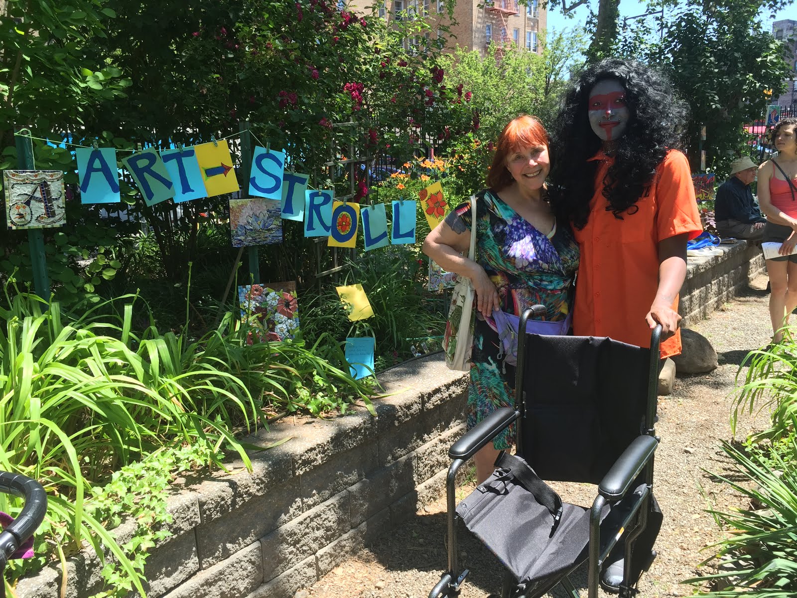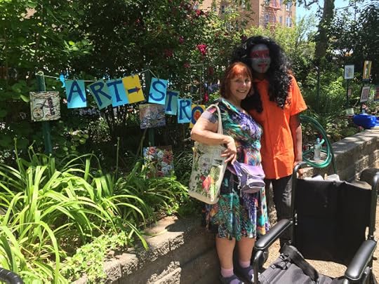 Outpatient Asylum Vocalist Lexis Grover and moi in front of Alice C. Hunsberger's Mosaics.