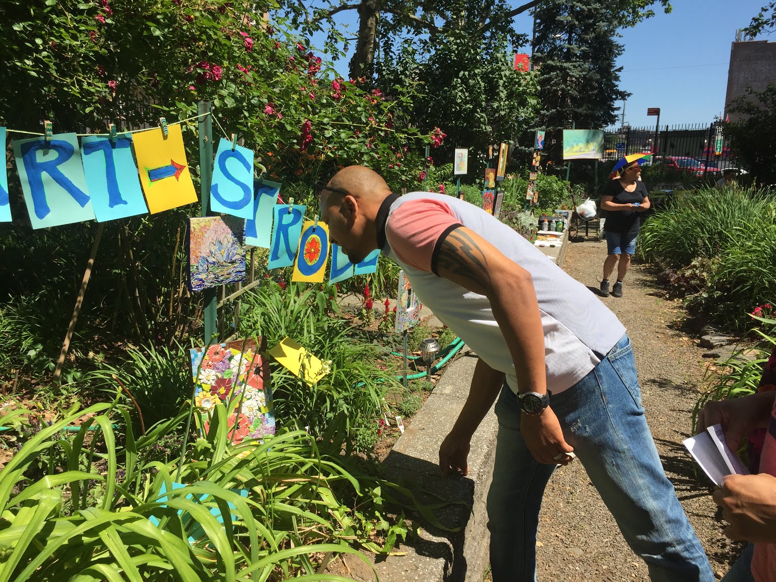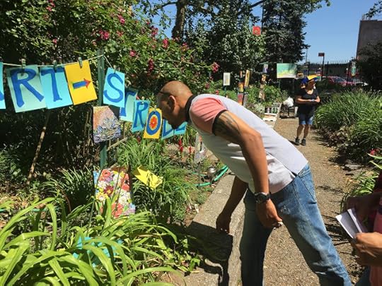 Different because this year's art show showed new blood. For example, A two piece band showed up called Out Patient Asylum and performed a short set for us. We also had artists there who'd never been there before, like photog, Aliza Frazier, wonderful and unique artist Chrystal Romero, artist and graphic designer, Alexandra Roth, (who was a blessing and helped me with the programs and printing), two truly amazing mosaics workers, Alice C. Hunsberger & Anina Klein, Artist Frank Barrett plus Calligraphy and hand style writer Dubblex. We also had return artists, Gunther Bechofer and Marc Soliman who was kind enough to show up without any notice.