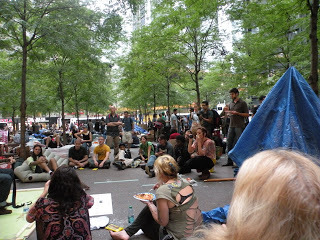There's an excellent energy down at occupy wall street and finally demonstrators and occupying citizens are being taken seriously. No one goes hungry and even the homeless have joined them.
