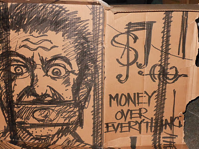 Below is G. Wagner who displays his sign along with his art and support. Occupy Wall Street is inspiring artists.