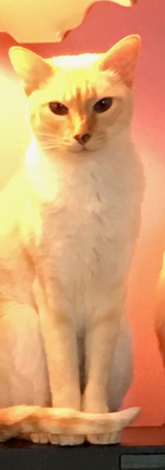 Cleo, stunning and engagingRavaged by cancer in 6 weeks Fast growing tumor behind nasal passagesPressing into her ear nose, later her eyesCleo's will was strong but cancer’s more powerful Possessive to a fault She owned me, not me, her Cleo was mistress of my home Very frustrating when she would not permit other females besides her mother in our domicile What will we do without her?Beautiful till the end Golden silky hair became unkemptWeight falling from her frail body like autumn leaves Left with no choice Hope gone, my heart bereftWant to hold on to her purrs and love Her head pushing against my body Her rough tongue licking my hand, as I'd pet her Unable to purr and eat, the tumor grew fast blocking the way Vets claimed 50 - 50 chance, said they could remove, after one already tried, Not sure if they wanted to help save her or wanted the young interns to learn Lessons learned too lateCan't hold back fateNever listen to vets when your gut dictates a different routeGive a few more peaceful days, not surgery trauma Hours of anesthesia wrecked an already starving soul striving to survive I regret not continuing using subcutaneous water Combined with finger feeding baby food Instead doctors installed a feeding tube Made her gag even worse than before Doctors almost convinced me her tiny shrinking body could handle radiation fine Sure glad I didn't listen, only wish I hadn’tlet them put her small shrinking body through surgical traumaCan’t forgive myself, made her suffering worse Let interns learn and experiment, whenIn the end, everything they did at AMC made it worse, Kinda like our governmentLetting go of Cleo was the hardest thing I've ever done. There will never be another CleoKnowing Cleo’s out of misery is no consolation Miss her love, her energy, her beauty, her excitation Flame point Siamese with deep blue eyes; visualize her exotic look, Feel her strange personalityCat fanciers classify Flame point Siamese as “Exotic”Even though Cleo clearly is pure Siamese, through and through