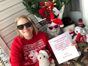 Frank, the Christmas Gargoyle, is as his name namesake would suggest, is a gargoyle, yet the Christmas title wasn’t part of his moniker before December 2019. Frank, a heavy stone sculpture, stood guard on Denise Starr’s porch for three years before a nosy Karen began leaving notes that Frank was out of step with the Christmas holiday, demanding his removal. Starr refused and instead doubled down, adding a Santa hat, you know, to make Frank more festive. Karen left more notes decrying Frank’s new attire. Starr added friends to stand with Frank including, Christmas hippos and a skeleton dog. When COVID-19 hit, Starr added a plague doctor to the mix.