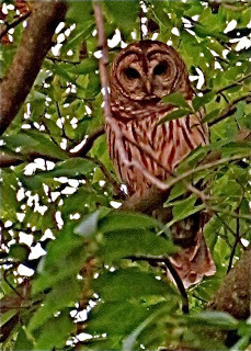 Note 1: The barred owl is also sometimes known as "the hoot owl". That's what we called them when I was growing up, and we heard them often. We have heard this owl many times while living here, but have never seen him.
