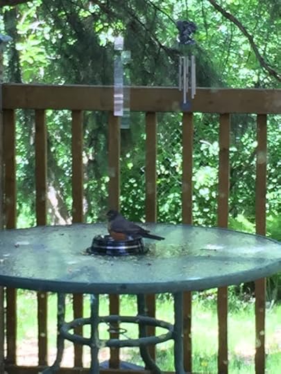 In the meantime, my neighbourhood Robin is celebrating the completion of book two, with his usual daily bath. Which, by the way, has the squirrels and other birds squawking, chirping and flailing their tails in their annoyance that the local watering hole has been emptied.