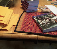 A reprieve in the postal situation in Canada that was threatening a mail shutdown, gave me enough wiggle room to get the signed books off to Goodreads winners this morning. I believe the man having trouble with the photocopier was decidedly frustrated with the amount of time the transaction was taking. But he'd already taken a fair amount of the clerk's time before my arrival and she seemed prepared to ignore him. Meanwhile, he kept shooting frustrated looks our way, getting closer, scowling borrowing and not returning the stapler - which took more time as the clerk hunted for it. Scowling some more, moving back and forth. All, it seemed in a bid to get some help. But it appeared the clerk was determined to remain focused on my mailout. So there wasn't much I could do. And with ten