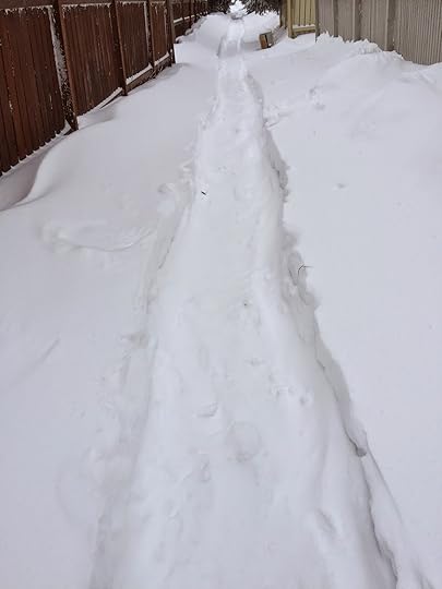 A public path blown clear by someone - thanks!So after our walk or snow slog - there's snow to be cleared, and after that, a path to be dug through the backyard, again for the dog. Who said dog ownership was easy? Then clearing snow off the deck and away from the back door so it doesn't track in and... and... Winter is definitely a project. I remember a month ago, Arizona and yard maintenance seemed to mean nothing more than a man showing up with what looked like a leaf blower on his back and blowing the dust off patios. Now it means, shovelling and shovelling and shovelling again... And the humidifier is running just like it was down south because despite the snow, it's a dry kind of cold...take my word.