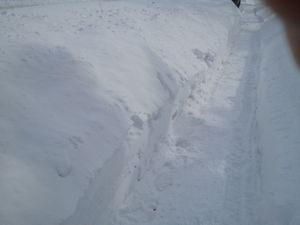 snowbank with a sand shovel.