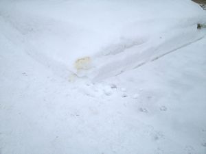 You all know what that's about, all you dog-lover people and even those of you who are not and just curse all us crazy dog walkers - you know too. I mean we can scoop the dog poop, but the yellow snow, well there's nothing we can do about it marring the landscape. It's just there, usually - maybe conveniently, depending on what goes on in a dog's mind, at a high traffic corner or at the end of a meticulous and well-shoveled driveway and there's nothing you can do about it. Except either shovel it away and put it somewhere less conspicuous or wait for the next snow or spring melt. It's ugly and it really wrecks that expanse of glorious white that stretches for miles or until the next patch of yellow.
