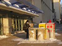 The bus is a whole other world and you're only getting a brief glimpse. Who is the young man that keeps hiding behind the hood of his hoodie? Who is the older woman who is chatting up the young man with the heavy accent? Are they lovers or... Then there's the girl with the sad eyes and the bleached blonde hair with the heavy swathe of blue cutting across one side - what's her story? Overhead are the signs warning against bad behavior on the buses. I glance warily around the bus for the culprit that may have instigated such persistent warnings - for the signs are everywhere. But the ride turned out uneventful. Instead we soon discovered that like foreign travel, even when English is the first language of everyone involved, there can be communication break down. This time it meant a six block walk in the cold.