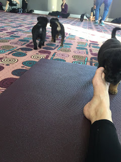 So puppy yoga it is. And with eight adorable puppies, a group of puppy wranglers and twelve yoga participants, it was an interesting event. Try to do downward dog with a real dog licking your toes. So after an hour of puppy cuddles and kisses, and some attempts at yoga - puppy yoga ends. Apparently animals in yoga is a bit of a thing. The instructor has a studio where she has cat yoga.