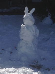And that's when I discovered that not only was it Easter but someone had gotten pretty creative in the snow department. With, hopefully the last dump of snow of the year, they created a rabbit complete with twigs for whiskers.