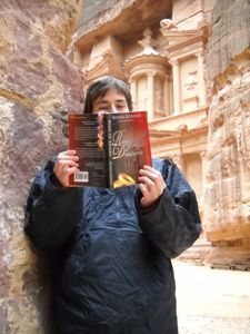 So instead I worked on finishing up that story that had some clogs in its own drain. Turned out that was much easier on my blisters and much more successful than the frozen-clay escapade from yesterday. Taking a break yesterday and doing some physical labour actually got the creative side flowing again. Now, if a few days is enough to cure those blisters - I'll head out tomorrow and set out to work on that drain, or as I like to now call it - my creative workout program. And on the horizon, I'm hosting an author on tour later in the month - with her latest, a murder mystery. More details later. In the meantime, here's a pic of my Ring of Desire in Petra. Was I there? No. But a friend trotted that book half way across the globe to end up with this shot.