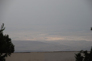 And for those of you, that like me are hankering to travel, here's a view on a foggy dayof Jerusalem on the left and Jericho on the right all taken from the shores of