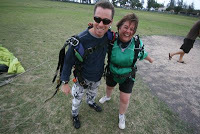 I tease Wyatt about going right then left as he deftly steers the glider in circles. He whispers in my ear that I am being cheeky and so that I should take over the controls and so I do. I turn the glider in circles heading ever closer to the ground. About 200 feet off the deck Wyatt takes over and we land on the button. The landing is softer than jumping off a bar stool. There are two guys there to grab the chute and unhitch me from Wyatt. My feet are back on the ground and I am forever changed. I did it, I actually did it. I jumped out of an airplane!