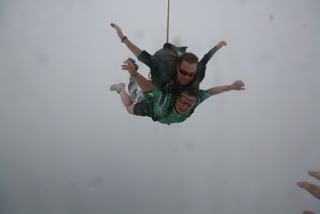 We fall forever; turning summersaults above the clouds, when I look down I see a white fluffy blanket, what a rush. Farmer is with us the whole time capturing on film this experience. Every expression all the way down is captured for me to relive again and again.