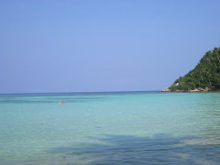 After landing it is a grueling run across hot pavement and through anxious hotel peddlers for one of many small pickups where a ride in the back means being jounced across rough roads,and being careful to keep your head bent or crack it on the roof as the truck pitches and rolls at a quick clip down the road. Right now there is nothing to see but iron bars, dust and heat and the occasional glimpse of what might be paradise. An hour later and a few misturns before a final deposit in a place so beautiful it is surreal. An aqua cove shimmers in the heat as it snuggles up against the restaurant and the tiny bungalows melt into the emerald green lushness of Thailand. It is a place where you could stay indefinitely, languishing under the hot sun, lounging by the pool and immersing yourself in a good book.Take care, keep safe!