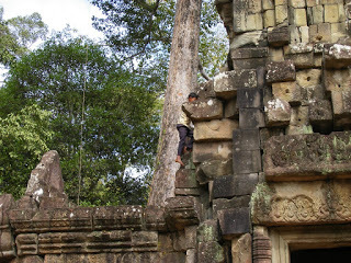This is my second trip to Siem Reap. It's just a brief jaunt, an interlude in the midst of our trip as we juggle arrival times into Myanmar. At Angkor Wat there are changes, long awaited restoration has begun on major portions of the structure leaving portions off limits. There are signs now that map out a logical viewing strategy with the usual arrows and signs. Somehow I'm disappointed. The mystery is disappearing with each new sign and regulation. The temple in the inner courtyard where the treacherous three story high, ancient, uneven, worn staircase - terrifying for us height challenged individuals - is now off limits. Apparently it was as dangerous as my overactive imagination had anticipated. Still, despite the changes, when I stand in the centre of Angkor Wat beside a Buddhist shrine with incense wafting around me and a man begins a chant that echoes through the ancient chamber I'm transported back in time when this place was alive with another people. People who built something fabulous not just for the Gods they worshipped but for themselves and for the people that served them. It is all rather overwhelming.
