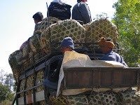 ant only for one vehicle and it was a relief to know that the driver didn’t have a heavy foot as he pulled over and the truck passed so close that I could feel the heat from his engine through our open window. It was a truck filled to capacity with produce and passengers, they rode inside and outside wherever they could find a place. I remember the woman who waved befor