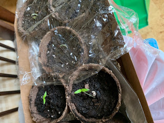 3) No seeds - Ah - cherry tomatoes that are past their best before date have seeds. And, one week later, voila, a group of spindly seedlings.