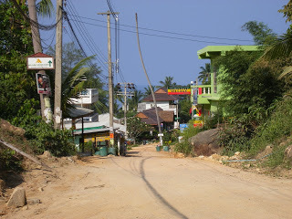 s echo in my head especially when you can see why - the roads are mostly paved but there are dips and unexpected craters where whole pieces of concrete or pavement are missing. Combine erratic road repair and beach wear with an island known for partying, this is the island where the full moon party has become infamous, and voila - the tattoo.