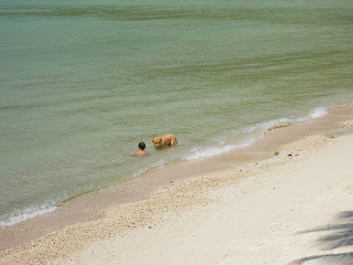and shells in the water and her evening looking for whatever doggie treasure she thinks might lurk in the gently lapping surf - also has no real liking for fireworks. In fact she is in search and destroy mode. With rockets firing off in tandem it is difficult to hold one smelly, wet lab by her rather chubby haunches. But in the end, the dog survived unscathed but frustrated that no one would let her get at those fireworks. It's always difficult leaving a place. The time there is always too short. As the time on this island dwindles away there is another adventure to anticipate. Soon it's off to Bangkok. One night in Bangkok before it's off again for a marathon plane ride that will end one day backwards and a continent away as this journey comes to an end. But it's not over yet...
