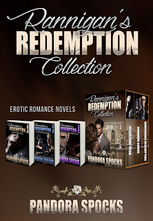 Pandora Spocks is launching her Rannigan's Redemption Box Set today! Patient Lee LOVES the Rannigan books, and now you can get them all in one box set.Details:Title: Rannigan’s Redemption Release Date: July 26, 2016Genres: Erotic RomanceHeat Level: Erotic Word count: 170, 376Author: Pandora SpocksCover Design: Eeva Lancaster, The Book Khaleesi Rannigan’s Redemption on Amazon: http://amzn.to/291BvNl
