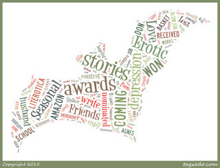 My Tagxedo illustration at the top is taken from the "About" page on my website. The humble, not-so-self-assured woman inside me is screaming about the size of the word "awards." It kills me to put that out there, front and center. I can't stand bragging. I usually hide my accomplishments, reveling only on the inside.