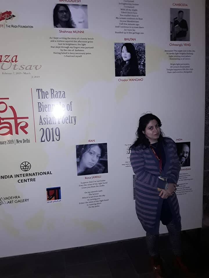 She has appeared in different literary festivals and sessions worldwide. She delivered a talk on " Iran in writing" at the British Library in Feburary 2015 following a Panel Discussion with Ahmad Karimi Hakkak and Daljit Nagra.In Gutenburg poetry festival(2013) she has talked about the image of contemporary Iranian women in Literature. She has been a guest poet in different Persian study centre in the United States like Chicago University, Colombia University, Iranica Centre, UCLA, University of Arcansas, Meriland university, George Washington University, Library of Congress and... India's Asian biennale of poetry(2019) is among her recent contributions.