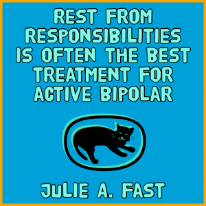 Julie A. Fast is the author of Loving Someone with Bipolar Disorder: Understanding and Helping Your Partner. She runs a group for partners on Facebook called The Stable Bed. The post below is an example of posts on The Stable Bed.