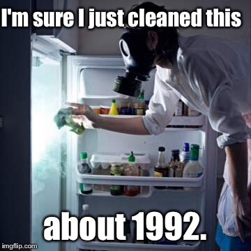 That is when I will notice the food container on the bottom shelf, shoved in the back next to the jar of pickles and other things I always buy that never get eaten.