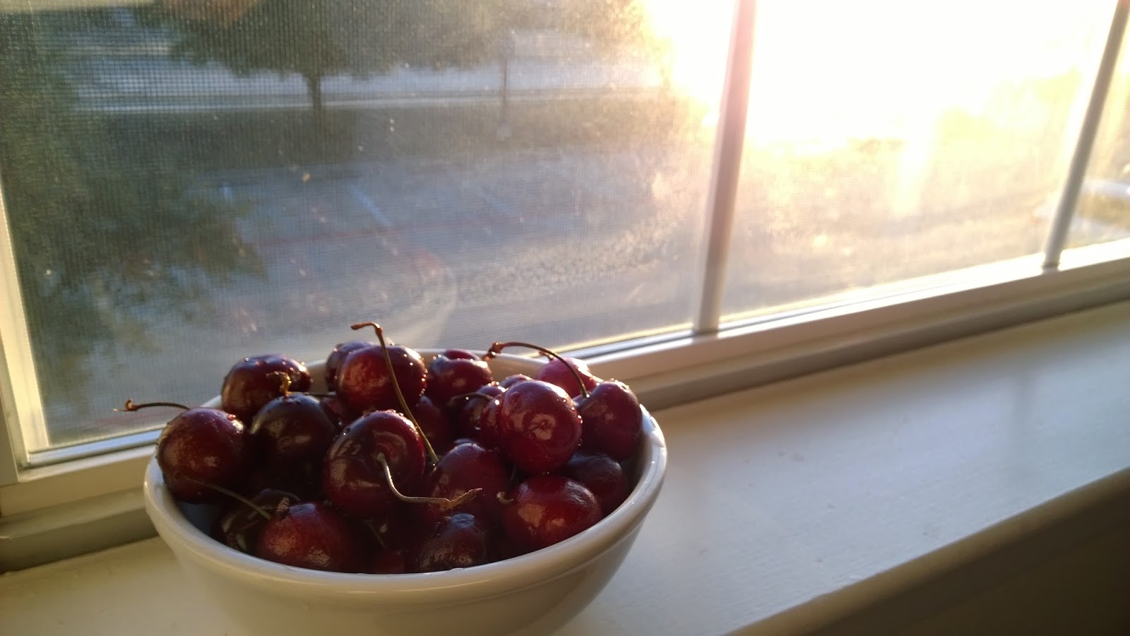 सूखे हुए पेड़ों की टहनियां कुछ यूं फैली हुयी थीं कि जैसे किसी ने बाँहें फैलाई हों. टहनियों पर धूप पड़ रही थी और उनके सिरे एकदम सुनहले लग रहे थे. आसमान में चाँद का आधा टुकड़ा भी था. साथ साथ चलता. एक जगह बैगनी फूल खिले हुए दिखे. उन्हें देख कर याद का कोई रंग टहका सीने में कहीं. मैं पूरे रास्ते तसवीरें खींचती आई थी. कमरे पर आई तो भूख लग गयी. चेरी धो कर बाउल में रखी. खिड़की से धूप अन्दर आ रही थी. मैं धूप में अपने लिए एक छोटा सा कुशन रख कर दीवार से टिक कर बैठी थी. किताब, कागज़ और अपनी कलमों के साथ. डूबते सूरज और चेरी का मीठा कत्थई स्वाद जुबां पर.