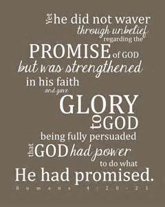 Who against hope believed in hope, that he might become the father of many nations, according to that which was spoken, so shall thy seed be. And being not weak in faith, he considered not his own body now dead, when he was about an hundred years old, neither yet the deadness of Sarah's womb: He staggered not at the promise of God through unbelief; but was strong in faith, giving glory to God; and being fully persuaded that, what he had promised, he was able also to perform. And therefore it was imputed to him for righteousness.