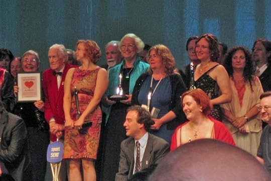Since that first time, I’ve won Hugos, emceed the awards ceremony twice, and presented countless awards. I’ve handed Hugo Awards for all kinds of fiction to all kinds of authors, told them congratulations, beamed at them as they made their acceptance speeches, hugged them, and helped them down the dark stairs backstage afterwards. I’ve loved doing it. And I’ve loved everything else about the Hugos–the anticipation and the nervousness when you’re a nominee, the fun of bantering with George R.R. Martin and Mike Resnick and doing comedy routines with Robert Silverberg, the excitement of watching authors and artists you love be awarded for the work they do, and the joy of being in a room with thousands of other people who love science fiction as much as I do. I’ve adored every minute of it. Till now.