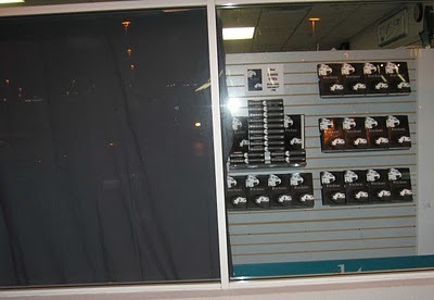 Mysterious Galaxy blacked out one of their windows for the signing.