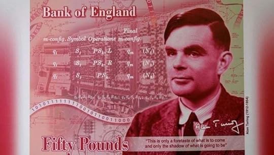 Which meant that in 1952, when he got in trouble, the courts didn’t realize they were charging and convicting the man who had won the war for Britain. To them, he was just a gay man, and in the 1950s, being gay was a serious crime, punished by prison. (Look at what happened to Oscar Wilde, and he was a famous playwright when he was arrested.) Turing was stripped of his security clearance (which made it impossible to do the work he loved), tried for “gross indecency” and given the choice of prison or chemical castration. He chose the latter, but the medications made it impossible for him to work or think, and he committed suicide two years later. A crime had been committed, all right, but it was the British government which had committed it, and putting Turing’s picture on the 50-pound note is obviously in part an act of atonement for what they did to him. “He deserved so much better,” the Governor of the Bank said in his speech.