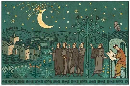 That night, “after sunset when the moon was first seen,” five monks were sitting outside looking at the sky and the crescent moon when the upper part of the horn “suddenly split in two. From the midpoint of this division, a flaming torch sprang up, spewing out fire, hot coals, and sparks. The body of the moon writhed like a wounded snake. Afterwards it resumed it proper state. This phenomenon was repeated a dozen times or more, the flame assuming various twisting shapes at random and then returning to normal. Then, after these transformations, the Moon, from hook to horn, that is, along the whole length, took on a blackish appearance.”