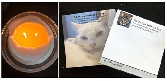 I’m also grateful for the little things in life–like morning views on my runs, my candle that’s been smiling at me all week, and custom Post-its with my cats’ faces on them.