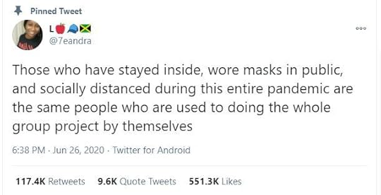 America has always been lauded for its focus on individualism, and now we are seeing the dark side of that. We seem incapable of thinking as a group, for the group. It’s demoralizing and disheartening. I have been feeling depressed this week, and I know it’s because of this. I’m sad about the virus itself, but I’m sadder about what the virus is revealing about us as people.