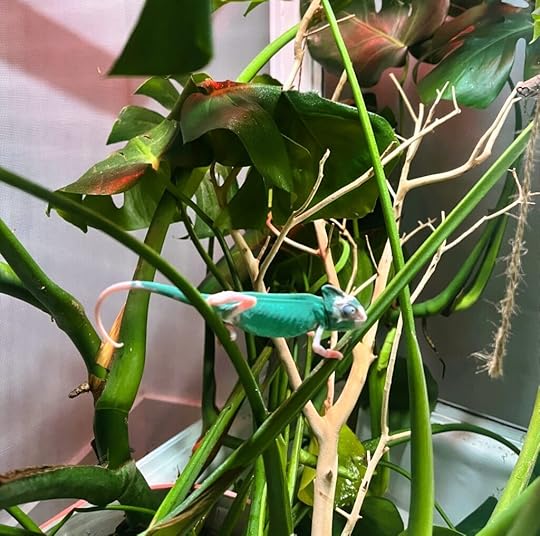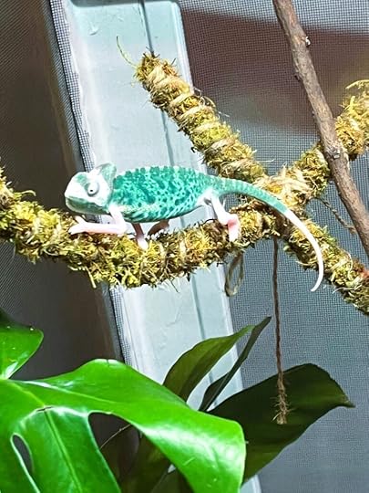 A baby chameleon! Quite possibly the strangest thing I’ve ever received in the mail. So tiny and cool to watch. My daughter has been wanting one. My boyfriend built her an amazing cage and we finally got the creature. The cats were very enthralled, which caused me some concern, but they are now back to their disinterested selvesSweet texts from my daughter. She has a watch so she can communicate with us about pickups at the YMCA and whatnot. She’s started sending me little messages and I will save the screenshots foreverDinner with a good friend at a new-to-me Italian restaurant this week. It was delish and I just love my friendsRain! It’s not fun to run in it, but it’s so good for our state right nowSpeaking of running, I set a 5K PR (20 minutes flat!) in the middle of my workout on Wednesday. Was not expecting that!Snapshots: