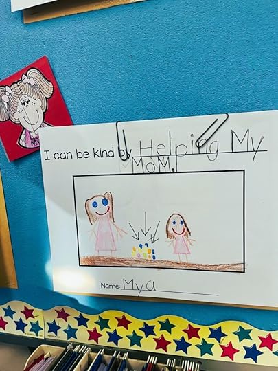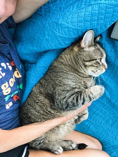 From top to bottom: My daughter insisted on taking this photo of me. We are in our Kidz Bop era and I’m loving it; artwork seen at back to school night that made me smile; cuddles with the most loving cat ever.