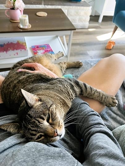 My daughter is back in school and we are in somewhat of a routine again (though it’s been super hard to get up in the morning this week)Anne Lamott! I got to see her speak last night at an event and it filled my cupI signed up for a half-marathon at the end of February. Nice to have a goal to work toward! Pet cuddles. I cannot get enough latelyA couple pet snapshots (sorry, that’s all I got):