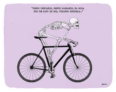 Sama e Carlos Tê na apresentação do Nada a Temer»Uma das histórias de Nada a Temer apresenta-se como reportagem, acompanhando as manifestações do Movimento Passe Livre, em São Paulo, já no início deste ano. «Contra a Tarifa» segue as linhas de um trabalho jornalístico, apresentando o contexto geral, explicando os factos na origem do movimento (o aumento dos preços dos transportes públicos, decidido em dezembro de 2015 pelo Governador, pelo Prefeito da cidade e pelas empresas transportadoras), analisando as consequências destes factos no quotidiano da cidade e seguindo de perto algumas das muitas manifestações que ocuparam as ruas de São Paulo. Importa dizer que Sama não cumpre a regra da imparcialidade jornalística, não se abstendo de comentar o papel da polícia e da repressão, apropriando-se de partes do discurso dos manifestantes. Uma das mais interessantes linhas de leitura desta história é, por isso mesmo, a reflexão sobre essa ideia de imparcialidade e o modo como serve, ou não, os leitores. Que tipo de imparcialidade se pode almejar quando as notícias de maior circulação revelam, tantas vezes, fraca informação sobre as manifestações, generalizações inaceitáveis sobre o comportamento dos manifestantes, poucos dados sobre o negócio na origem do movimento? Perceber que papel pode ocupar uma banda desenhada como esta na informação a que todos temos direito, lendo-a à luz de outros movimentos de informação alternativa que estão, queiramos ou não, a mudar a face da informação e do modo como esta circula, pode ser essencial nos próximos tempos. Sama contou à Blimunda que, para além de teatro, estudou jornalismo «na Faculdade Hélio Alonso, no Rio de Janeiro, faz tempo, isso... Nunca tinha exercido, até agora. Será que irei precisar da minha carteira?» «Contra a Tarifa» é, portanto, o trabalho de um jornalista com formação, mas esse facto não faz Sama prescindir de uma opinião sobre os movimentos de informação que têm surgido, no Brasil como em muitos lugares do mundo, à margem dos média tradicionais. «Olha, gosto muito da iniciativa da Mídia Ninja, ainda mais considerando que as fontes oficiais no Brasil não são lá muito confiáveis. As minhas fontes são bem diversificadas, além de ser brasileiro e ir com regularidade ao Brasil, leio bastante e troco muito com outros profissionais da área de opinião e de jornalismo. Considero-me um autor de ficção, mas estou a ficar cada vez mais à vontade com os relatos de “não ficção” e biográficos. E confesso que os factos, não só no Brasil, mas de um modo geral, estão muito mais assombrosos do que qualquer ficção hoje em dia...» Ainda assim, o autor não confunde os planos da realidade e da ficção, clarificando que este livro não é, todo ele, uma peça informativa, mas insistindo na importância da informação dita alternativa numa altura em que os média perderam grande parte da sua independência, tão essencial: «Em algumas peças, expus metáforas e também caricaturas da realidade urbana brasileira, mas no seu contexto geral, NADA ATEMER é o mais sincero possível. Independentemente disto, acho que há que ter sempre cuidado com qualquer fonte de informação nesta era em que vivemos... Existe muita informação boa e ruim a circular por aí. Infelizmente, cada vez mais os meios de comunicação estão a serviço do capital privado, a publicitar pensamentos uniformizantes ao invés de informar ou noticiar. Recomendo a todos que, antes de aceitarem qualquer notícia de algum jornal, revista, TV,