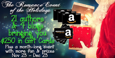 Join us for THE Romance Event of the Holidays. 21 Authors in various Romance genres and 4 bloggers are bringing you a brighter holiday with a month long event full of joy, cheer, book promo, and games! There will be a Rafflecopter with gift cardstotaling$250. Invite your friends. Starting onNovember 23rd, the authors will be showing up randomly through the following month. Make sure to leave your notifications on so you don’t miss any giveaways.https://www.facebook.com/events/16703952531...