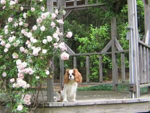 That was a good while ago. We were both so much younger. She was, oh, about two or three years old She was beautiful – even if you don’t know much about Cavaliers, you can see that. When I sent that picture to my editor, she said she thought the dog in the photo might be artificial because she was too cute to be real.