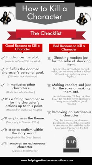 I’ve killed other characters, of course, and I’m sure I’ll kill more in the future. Sometimes it’s necessary to get the plot to work and sometimes it’s necessary to add emotional weight and sometimes for some other reason — you know, there’s an infographic for this — here: