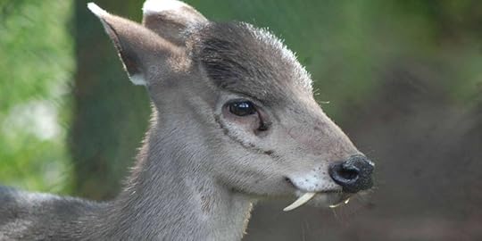 Yes, the upper teeth grow right up through the snout, piercing the skin. See how they curve back? Yes, they can actually keep growing and pierce the skull. No, it’s not clear why tusks like this would be a good idea. Did evolution do this, or are the animals absolutely fictional?