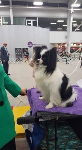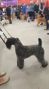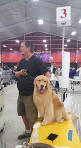 It was a worthwhile weekend, though. Conner picked up three more points by getting Best of Winners each day. Good job Conner! I was not surprised at all. He really is a handsome young dude and very, very few judges seem to care about that mustache of his. He has nine points now, so he has caught up to his litter-sister Kimmie. He took twelve one-point shows to do it, whereas unbeatable Kimmie did it in nine straight shows. Now they each need just six points to finish their championships, but they have to get them three at a time, as “majors.”