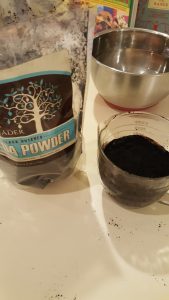 I got this recipe here. I made mine blacker by using black cocoa powder rather than Hershey’s special dark cocoa powder. Believe me, the cocoa powder I used was very black.