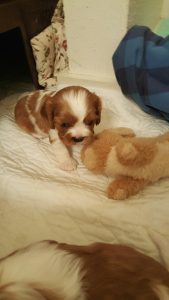 It’s remarkable when you think about it, how easily tiny puppies learn to trust huge people. Cavalier mothers usually don’t mind a bit if you pick up their newborn puppies, which is a whole ‘nother level of trust. A few do, but certainly none of mine object. It’s really quite something.