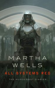 I don’t much care for the title — “Murderbot” Does not have that certain something I look for in a title. I guess it sounds too grim? The titular character does call itself that, but ironically. There’s a good deal of violence and blood and betrayal in the novella, but the cool voice of the protagonist deemphasizes the violence, so it’s definitely adventure rather than horror. Here’s part of the description from Goodreads: